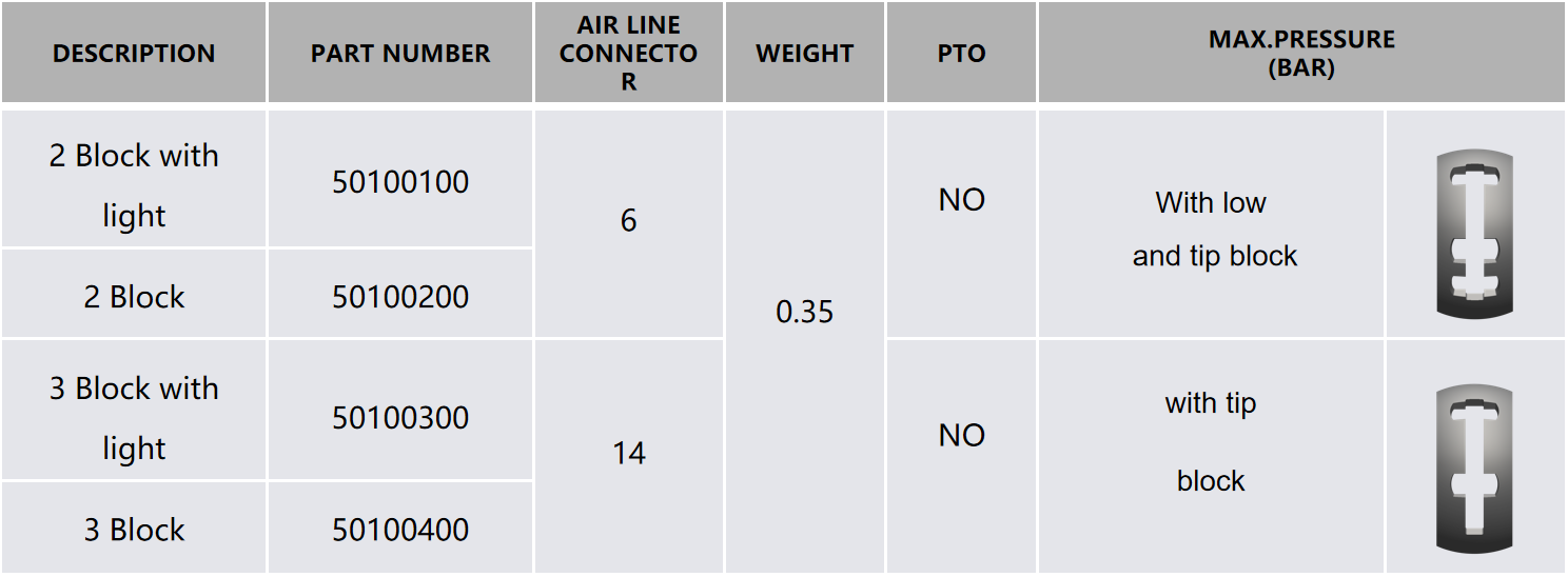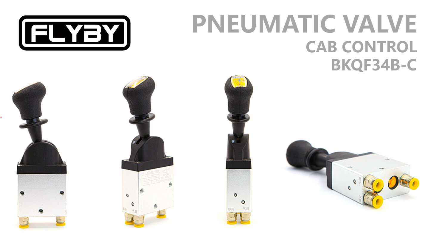 Válvula de manobra na cabine com 3 posições para realizar as funções de inclinação, parada e descida do veículo.O corpo da válvula adota estrutura de perfil de alumínio para maior resistência.